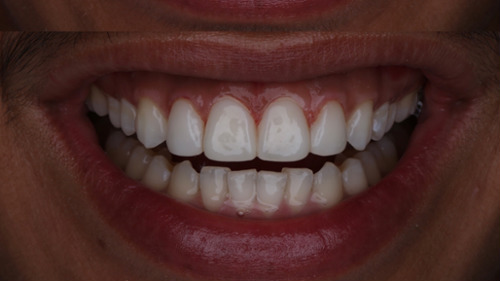 Before the test drive visit, the design is printed on a 3-D model and a matrix is created to replicate it. During the appointment, temporary acrylic is placed over the teeth to simulate the new smile. Photos are taken and reviewed together, allowing patients to clearly visualize the potential result before moving forward with treatment.