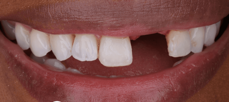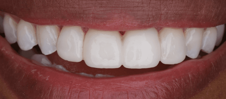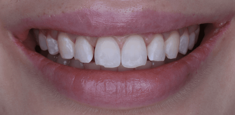 This patient is a teenager and was born without two of her front teeth, and she is too young for implants. After her orthodontic treatment, she had large gaps from the missing teeth. We designed her new smile with Digital Smile Design and Dr. Katie was able to execute a beautiful new smile for her without removing any of her existing tooth structure. So, if she ever decides to get implants to replace her missing teeth, we can remove the restorations without any damage to her teeth.